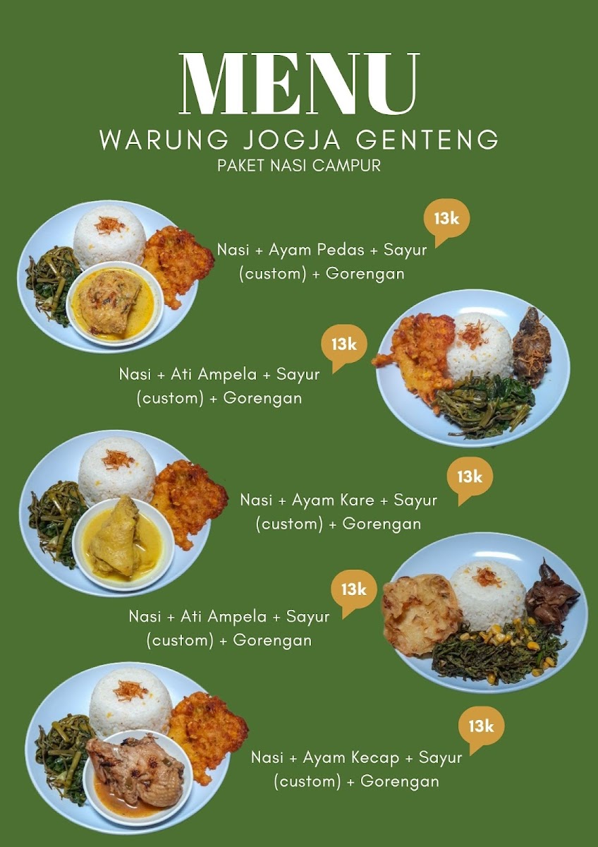 WARUNG JOGJA PRASMANAN offers an authentic Javanese dining experience right in the heart of Genteng, Banyuwangi. This humble eatery is celebrated for its traditional home-cooked dishes served in a prasmanan (buffet) style, allowing customers to customize their plates with a variety of flavorful options. The highlight is undoubtedly its gudeg, a classic Yogyakarta dish, though it’s available only in limited quantities and often runs out by mid-morning.